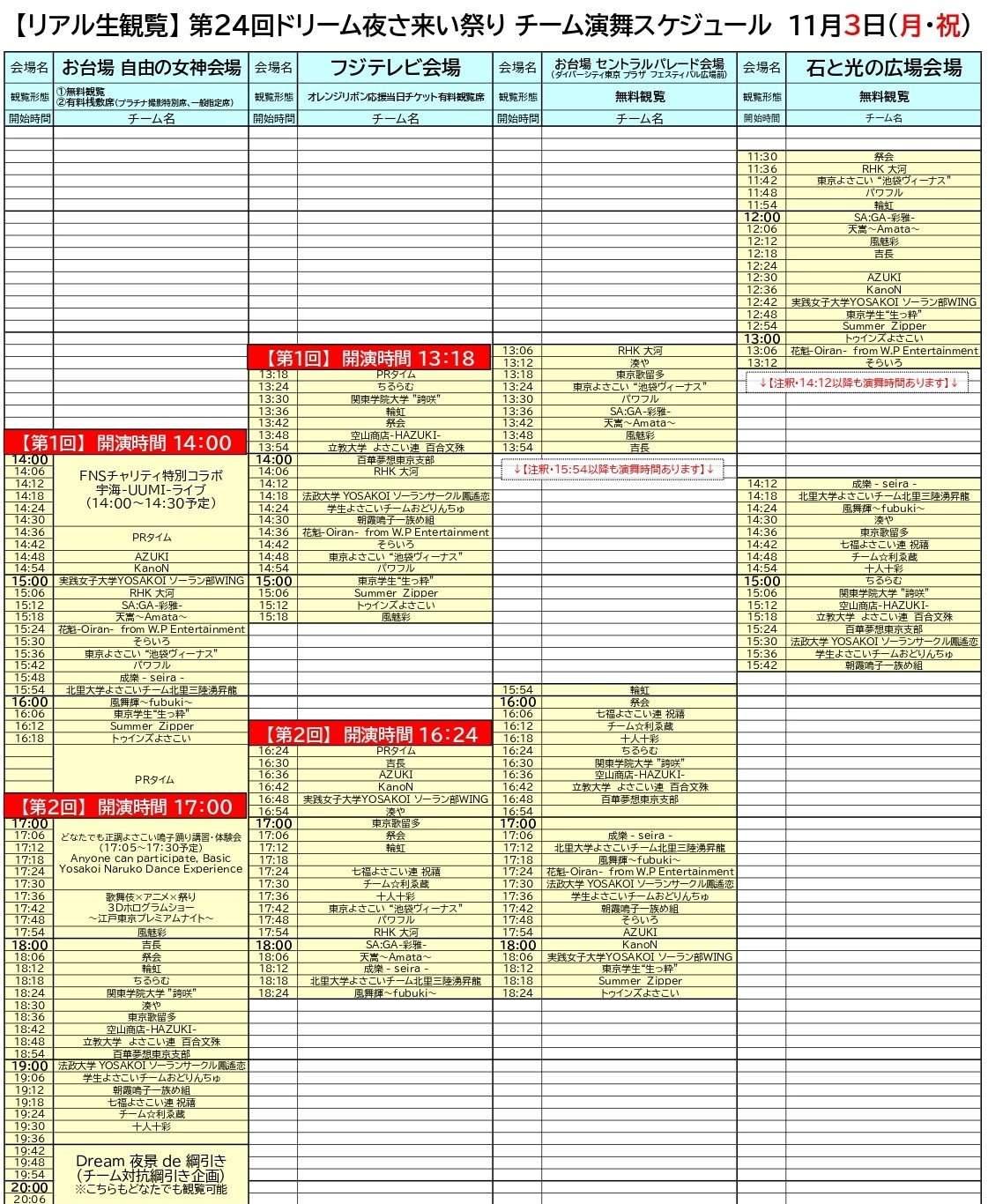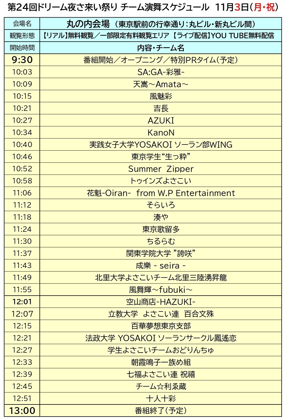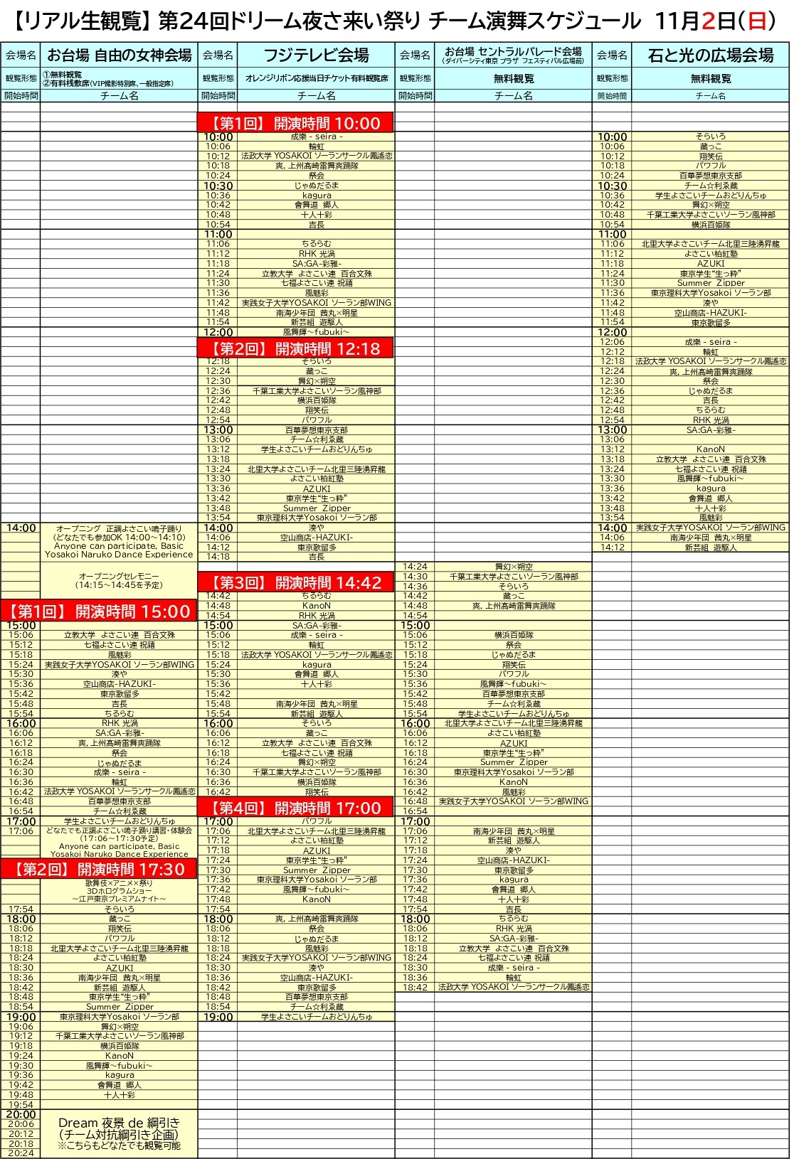 「第24回ドリーム夜さ来い祭り」チーム演舞スケジュール概略